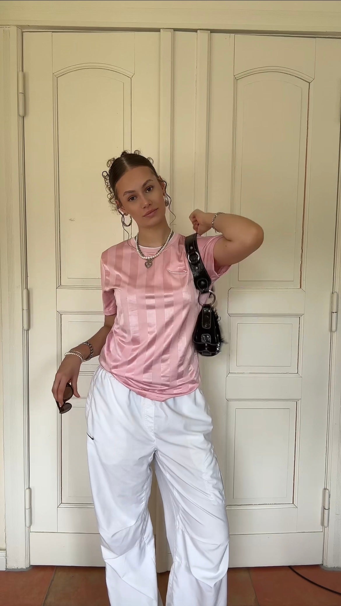 Helene zeigt uns, wie du deine Track Pants sehr nice kombinierst. Sie trägt hier in dem Bild eine Größe M.