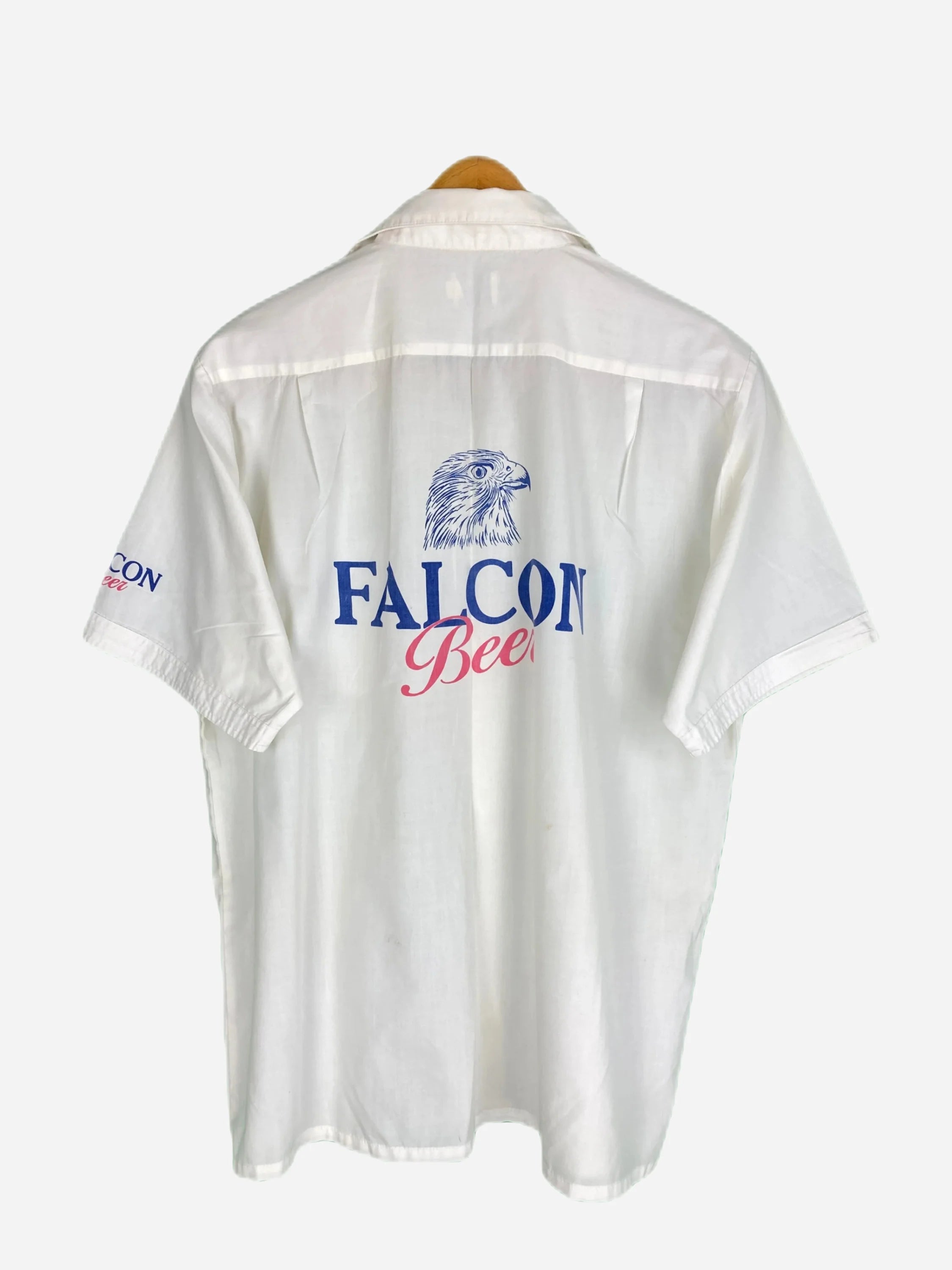 Details: Kurzarmhemd mit aufgedrucktem 'Falcon Beer' Logo und Adler auf der Rückseite und dem Ärmel, Knopfleiste vorne und Brusttasche.