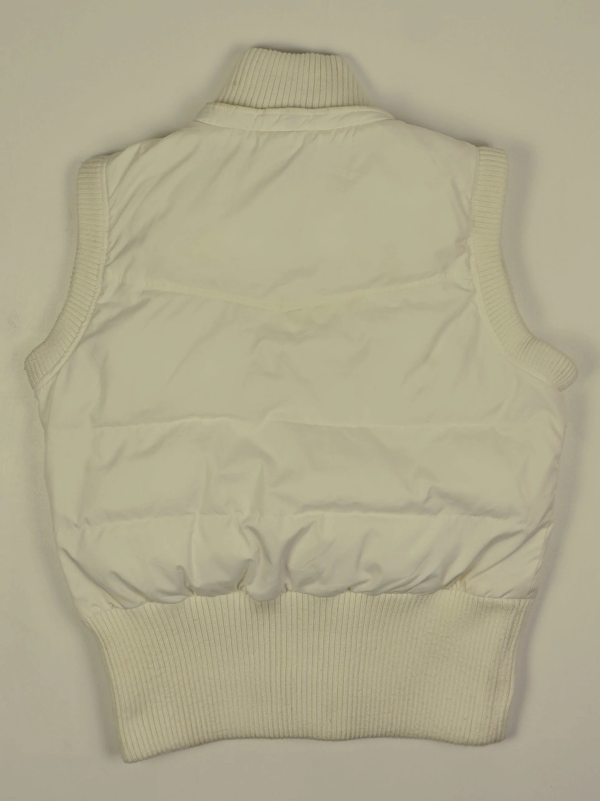 Details: Gesteppte, wattierte Weste mit Rippstrick an Kragen, Saum und Armausschnitten; goldgesticktes Trefoil-Logo; Frontverschluss mit goldfarbenen Druckknöpfen.