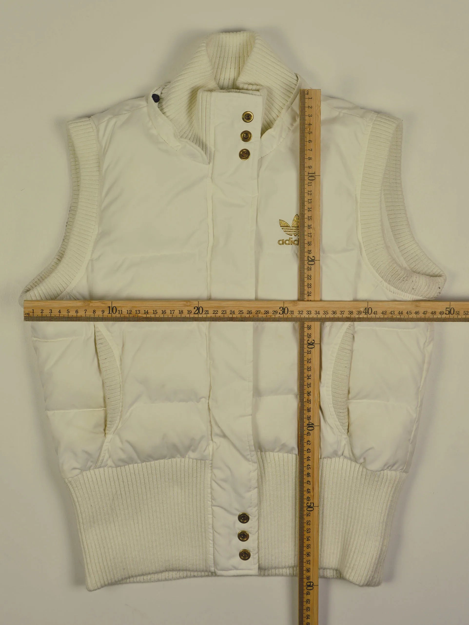 Adidas Weste in Weiß, in Größe S. Bitte die Maße im Bild 3 beachten und diese für eine optimale Größeneinschätzung mit einem Kleidungsstück bei dir Zuhause vergleichen.